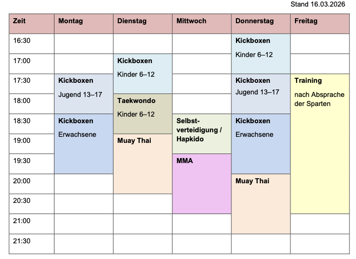 Jetzt anmelden und die Kunst des Kämpfens erlernen.